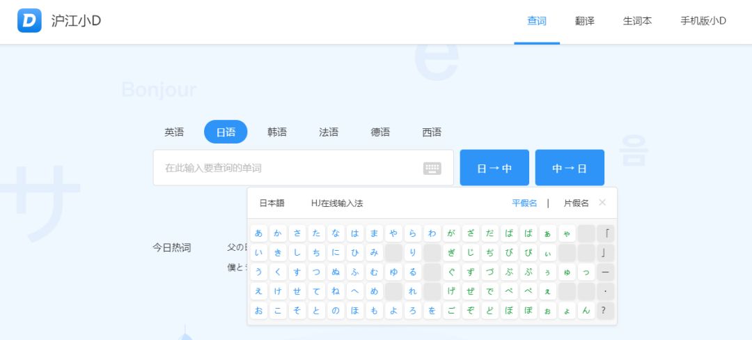 支持点选输入、平假名片假名切换的功能,其实还是比较简陋的。好处就是可以在除沪江小D之外的其他网页中使用(也不是所有的