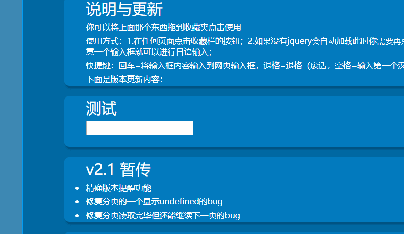 - 版本更新和汉字输入涉及到跨域连接服务器,暂不支持https协议的网站(但可以进行假名的输入,输入法服务器网站如果也是https应该可以解决这一问题。(应该