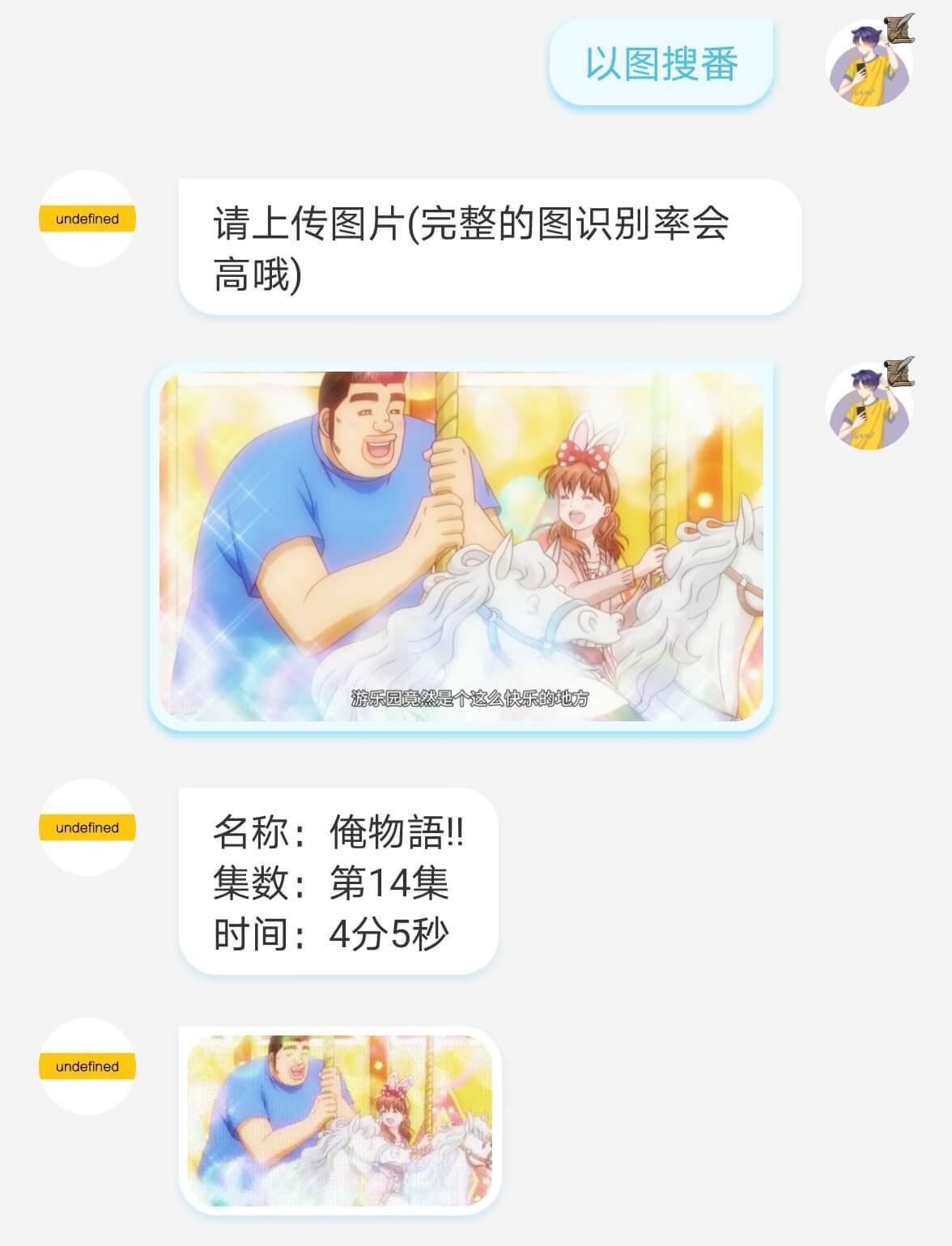 以图搜番,跟微信的区别是,它最后会发送动图,因为不能发视频